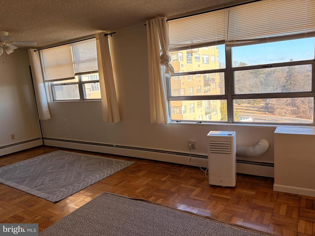 Beautifully maintained, large spacious light and bright Two Bedroom One bathroom unit. A closet and windows makes this a perfect home office, guest bedroom, or nursery. Large eat-in kitchen with breakfast counter, and separate dining area. Light and bright living room. Gorgeous hardwood floors throughout. Storage Bin on 1st floor of building. Lower level modernized laundry machines in Laundry Room. Open parking lot with designated handicapped parking; garage parking available for additional cost through management office. No Pets Above Third Floor. Huge outdoor inground community swimming pool with lounge chairs, umbrellas and covered area for shade. Plus patio with BBQ, chairs and tables with umbrellas. Huge outdoor free Parking lot has an opening to Township park. Indoor garage may be available for rent with RH office. Close proximity to Bryn Mawr movie theater, restaurants, shopping, Rosemont train station, hiking trails, major roadways - 476/76, Villanova, King of Prussia, Center City, Philadelphia Airport. Location, Location. Don't miss out on this one.