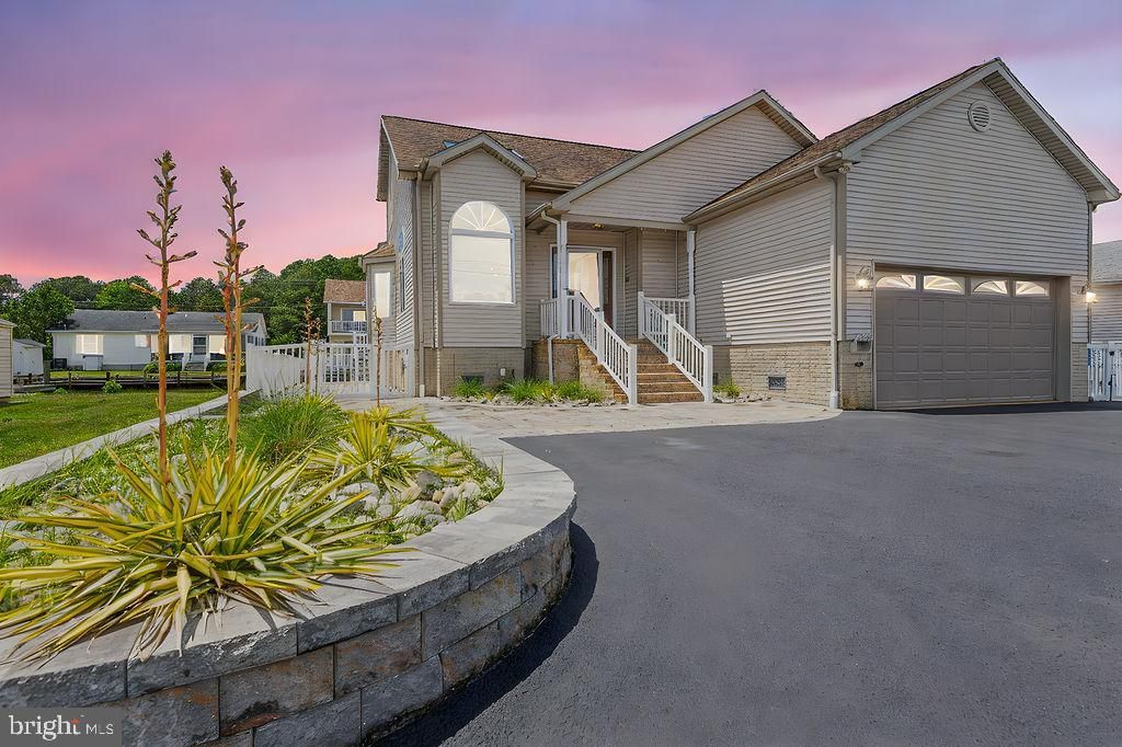 Waterfront living meets effortless coastal comfort in this custom-built single-family retreat on New Quay Road in the sought-after community of Cape Isle of Wight in West Ocean City. Designed for those who embrace life on the water, this exceptional home offers outstanding canal access with a parallel boat lift already in place and additional space to accommodate another watercraft, making it ideal for boating enthusiasts, anglers, paddleboarders, and anyone who enjoys exploring the coastal bays. From the moment you arrive, the home showcases pride of ownership with meticulously maintained hardscaping, low-maintenance landscaping, and an oversized blacktop driveway offering parking for up to five vehicles—perfect for hosting family and friends after a day on the water. A newer rear waterfront boardwalk provides easy access to your boat and creates the perfect backdrop for sunset evenings along the canal. Step inside and immediately feel welcomed by the open floor plan anchored by a dramatic floor-to-ceiling stone wall featuring a cozy gas fireplace, creating the perfect gathering space during those relaxing shoulder-season months. The living area flows seamlessly toward the waterfront, where sliding doors lead to the rear deck—ideal for outdoor dining, entertaining, or simply enjoying the peaceful canal views beneath the retractable awning. Beautiful hardwood flooring enhances the main living areas, while an adjacent sunroom offers flexible space that can serve as a sitting room, reading lounge, or private home office with views toward the water. The first-floor primary suite provides convenient single-level living, complete with a walk-in closet, whirlpool soaking tub, and double vanity bath, creating a private retreat at the end of the day. Just inside the garage entry you’ll also find a side-by-side washer and dryer, perfectly positioned for everyday practicality. Upstairs, a staircase leads to three additional bedrooms and a tiled full bath with a tub/shower combination, providing comfortable accommodations for guests and family alike. Thoughtful design includes abundant storage space within the eaves above the garage, ensuring room for seasonal items and coastal gear. Built with durability and ease in mind, the exterior features low-maintenance vinyl siding and vinyl railings, allowing more time to enjoy the waterfront lifestyle rather than worrying about upkeep. Located in West Ocean City’s Cape Isle of Wight, this home offers the rare combination of waterfront adventure and everyday convenience—just minutes from marinas, restaurants, shopping, and the beaches of Ocean City. Whether you’re heading offshore for a day of fishing, cruising to a nearby sandbar with friends, or simply relaxing on the deck as boats pass by, this property captures the very essence of the coastal boating lifestyle. A true waterfront opportunity for those seeking adventure, relaxation, and effortless living on the water.