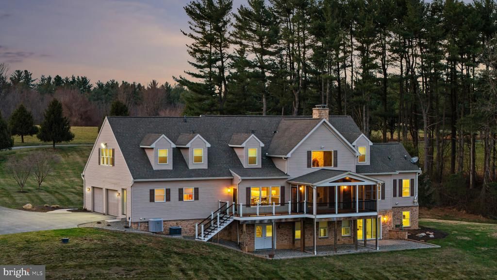 Nestled at the end of a private, tree-lined drive, this exquisite custom home by Lexington Builders, a division of Kinsley Construction, offers over 4,000 square feet of finished luxurious living space. The above grade daylight basement offers a potential 3200+ more if needed to finish as you like. Over 7000 sf to spread out. Set on more than 4 acres, the home’s magic begins with a sweeping walk to the covered front porch. Inside, a grand foyer leads to a two-story great room, adorned with rich hardwood floors and a stunning stone fireplace featuring a custom wood insert. The great room opens onto a vast screened porch with breathtaking views of the countryside. The light-filled kitchen is a chef’s dream, with timeless high-end cabinetry, solid surface countertops, stainless steel appliances, a center island, and a charming window dining nook. Off the kitchen, the current owners have crafted a gorgeous formal dining room, which also functions beautifully as an optional library with custom pine wall units offering a warm, inviting haven. Retreat to the private primary suite, complete with a spa-like bath—featuring a jetted soaking tub, a lavish tiled shower, and custom closet systems. Upstairs, three spacious bedrooms share a full bath and overlook the great room from a beautiful bridge. A daylight basement, with multiple windows and sliders, and rough in for future bath, offers another 3,200 square feet to finish as you wish. Additional luxuries include a 24 by 24 insulated and heated pole building with a pull-down attic, a three-bay wood shed. A seamless integrated stereo system with Harman Kardon speakers thru the the 1st floor are a sweet added feature. Every detail, from the ceiling fans on the front porch to all the gleaming S/S kitchen appliances, laundry appliances, and window treatments, has been thoughtfully selected. This is a rare opportunity to own a legacy estate, where craftsmanship, comfort, and tranquility converge. Immaculate and truly move-in ready. Contact us today to schedule your private showing and experience this exceptional home in person.