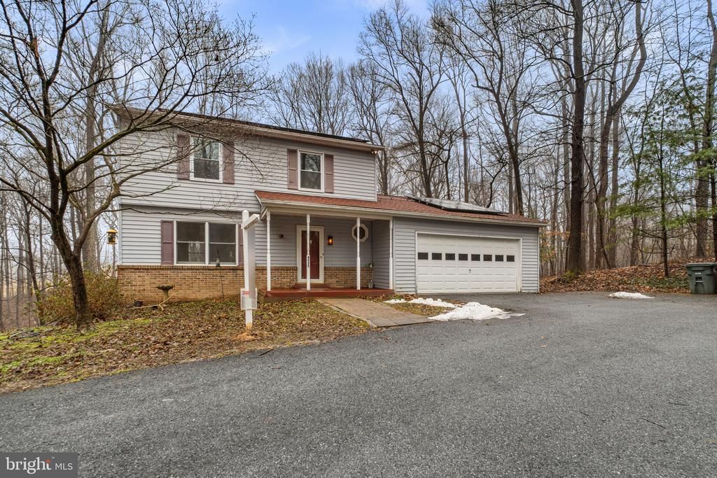 Thoughtfully priced with its condition and distinctive setting in mind, offering great potential for customization.Charming Colonial residence offering 4 bedrooms, 3.5 bathrooms, 2,365 finished square feet, and a 2-car garage, nestled on over two and a half tranquil acres in desirable Covers Corner. An asphalt driveway leads to the welcoming front porch, setting the tone for the home’s classic appeal. Inside, a traditional floor plan unfolds with luxury vinyl plank flooring throughout the main level. The foyer opens to a spacious living room that flows seamlessly into the formal dining room, creating a comfortable layout for everyday living and entertaining. The charming eat-in kitchen features stainless steel appliances, including a refrigerator installed in 2022, vibrant mosaic tile backsplash, stylish cabinetry, a pantry, ample counter space, and a cozy breakfast area with sliding door access to the exterior. Open to the kitchen is the inviting family room, highlighted by plush carpeting and a wood stove framed by a striking floor-to-ceiling brick surround. A conveniently located powder room completes the main level. Upstairs, the primary suite offers a comfortable retreat with carpeting and a private attached bathroom featuring beautiful tilework and a glass-enclosed shower. Three additional bedrooms and a second full bathroom complete the upper level. The walk-out lower level expands the living space with luxury vinyl plank flooring throughout the recreation areas, a third full bathroom, a versatile bonus room with a walk-in closet ideal for guests or a flexible living space, and a laundry room (washer and dryer 2024). Additional updates include HVAC (2025). Outdoor highlights include solar panels added in 2024, a large deck overlooking the peaceful wooded lot, complete with a charming footbridge crossing a scenic creek—creating a private, nature-filled setting. Ideally located in Covers Corner, the property offers a sought-after setting with convenient commuting access to Baltimore, Frederick, and Washington, D.C. *Select photos include virtual staging for illustrative purposes only.