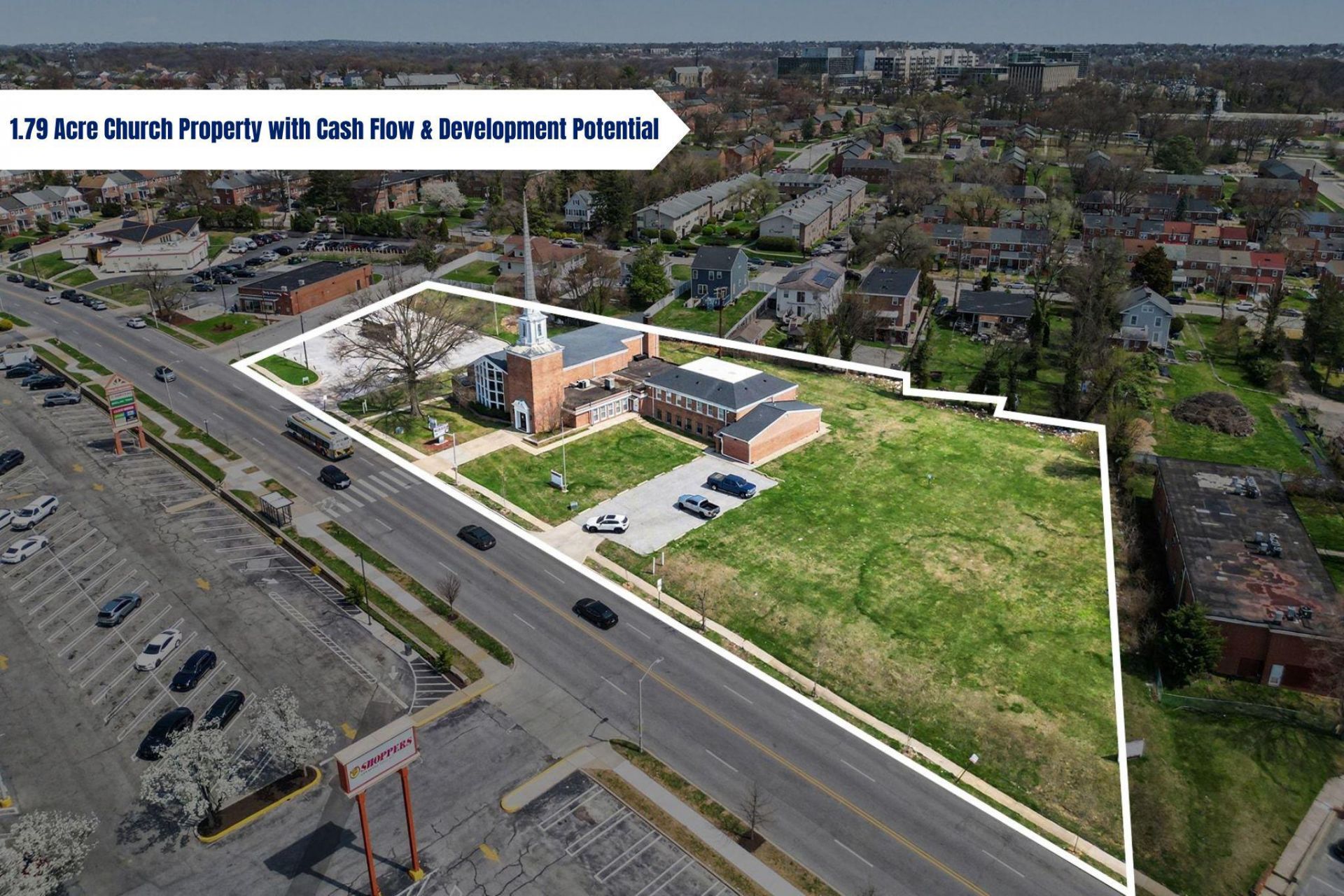 The Martin Home Group and CB Realty are pleased to present the opportunity to acquire the Greater Church of the Risen Saviour, a versatile 1.79-acre campus situated in the established Woodbourne Heights neighborhood of Baltimore. This unique asset combines a substantial 12,000 SF special-use facility with a significant land footprint, offering both immediate utility for an owner-user and long-term value via strategic redevelopment. Originally designed to support a vibrant community, the improvements include a 300-seat sanctuary, a 60-person fellowship hall with a commercial-grade kitchen, five private offices, and two conference suites. The property is further enhanced by 20+ paved parking spaces across two lots. Recent upgrades include roof, oil heating system, boilers, hvac, and water heater. The investment is further de-risked by immediate cash flow from a strategic parking lease with the neighboring Bank of America, providing a unique covered-land-play advantage during any potential transition or redevelopment phase. Situated in Central Baltimore, the campus occupies a high-visibility position directly across from The Alameda Marketplace and less than one mile from MedStar Good Samaritan Hospital. The site benefits from exceptional connectivity to major commuter corridors and public transit, placing it at the center of a dense residential and retail hub. As Baltimore continues to prioritize adaptive reuse and neighborhood revitalization, this 1.79-acre footprint offers a rare, scalable opportunity for institutional or community-driven reinvestment in a high-demand submarket.