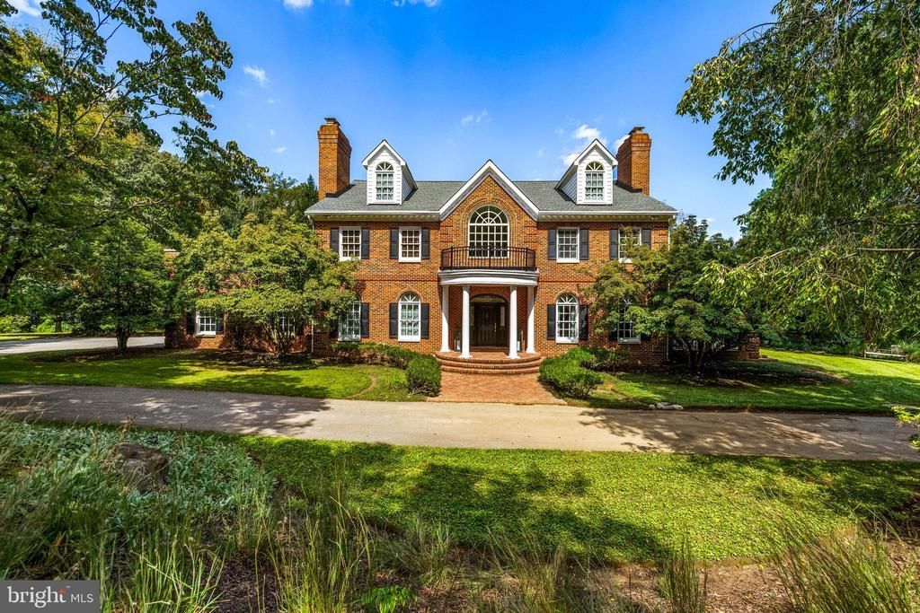 Set within the prestigious Hillstead community of Lutherville, 904 Hillstead Drive is a custom-built Georgian estate offering over 6,500 square feet of elegant, thoughtfully designed living space. With seven bedrooms, five full baths, and two half baths, this stately all-brick home is perfectly situated on a professionally landscaped 2.68 acre lot. Rich architectural detailing, formal and casual living areas, and seamless indoor-outdoor flow create a timeless residence suited for both entertaining and everyday comfort. The main level welcomes guests through a striking two-story foyer accented by black-and-white marble floors, where a semi-circular oak staircase rises beneath a vaulted ceiling. Off the foyer, the living room features hardwood floors, a tray ceiling, and a wood-burning fireplace with a marble mantel believed to be from the H.L. Mencken house. Four sets of French doors open onto a covered porch, extending the living space outdoors. The adjoining formal dining room showcases its own fireplace with a framed brick accent wall, perfect for gatherings both grand and intimate. A butler’s pantry, complete with cherry cabinetry, granite counters, and a glass tile backsplash, connects the dining area to the kitchen. The kitchen is both functional and inviting, featuring cherry cabinetry with custom details, a large island with granite top, and high-end appliances, including Sub-Zero and Thermador. The spacious breakfast area, beneath a coffered ceiling with skylights, opens to a screened porch and a wood deck, creating an ideal setting for casual meals and outdoor dining. Nearby, the richly appointed library offers custom mahogany built-ins, a concealed bar, and elegant finishes. A hall provides flow between the garage, kitchen, and formal spaces, while a main-level powder room off the foyer completes the layout. Upstairs, the second level offers a luxurious primary suite with a fireplace, walk-out access to a private roof deck with hot tub, and a custom-fitted double closet. The en suite bath features a freestanding soaking tub, quartz-topped vanity, rain shower, and beautifully finished tile work. Three additional bedrooms are found on this level, one with a fireplace and custom built-ins, and are supported by a shared bath and a hall bath. A laundry room and walk-out access to a second roof deck round out the floor. The third level offers two more spacious bedrooms, each with walk-in closets, built-in bookcases, and arched dormer windows, as well as a full bath and additional storage. The finished lower level adds flexible living space with a large recreation room, complete with Vermont Castings wood stove and French doors opening to the patio and pool area. A private office, wine room, seventh bedroom with en suite bath, and a half bath provide options for guests, work, and entertaining. The lower level also includes multiple storage areas. Outside, the home is surrounded by mature landscaping, tiered outdoor spaces, and classic hardscaping. A brick walkway leads to the stately front entry, while the rear features multiple covered and open-air entertaining spaces, including a screened porch, expansive deck, and bluestone-bordered patio leading to an in-ground pool with fenced enclosure. With a circular driveway, generous parking, and peaceful privacy, 904 Hillstead Drive offers a rare blend of timeless architecture, modern livability, and gracious acreage in one of Lutherville’s most desirable neighborhoods.