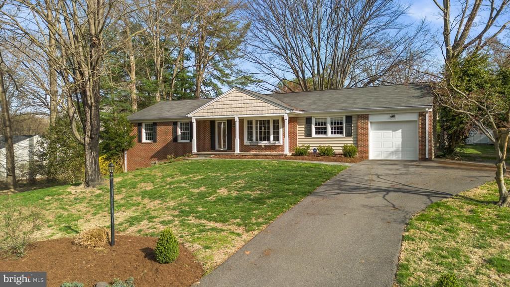 Charming and well-maintained ranch-style residence offering 4 bedrooms, 2 bathrooms, 2,469 finished square feet, and a 1-car garage in desirable Dunloggin. A welcoming front porch leads into a traditional foyer accented by vibrant slate flooring, opening to a spacious formal living room filled with natural light from a bay window. Hardwood floors flow seamlessly throughout the main level, continuing into a generously sized family room with both garage access (garage doors replaced in 2014) and exterior access for added convenience. The thoughtfully updated eat-in kitchen, renovated in 2012, features stainless steel appliances, including double ovens, upgraded granite countertops, pendant lighting, and ample rich cabinetry with a mix of open shelving. A breakfast bar connects the kitchen to the formal dining room, creating a seamless layout ideal for everyday living and entertaining. Hardwood flooring extends into three main-level bedrooms, including the primary suite with a fully renovated en suite bath completed in 2011, while a second full bathroom was updated in 2014. The bright, walk-out lower level offers exceptional additional living space, featuring a large recreation room with LVT flooring and built-ins, a fourth bedroom with plush carpeting, a versatile bonus room ideal for a home office, a spacious storage area, and a utility room with laundry facilities. Outdoor living is equally inviting with an open-air deck overlooking a large, open backyard, complemented by a lower patio and a detached storage shed.