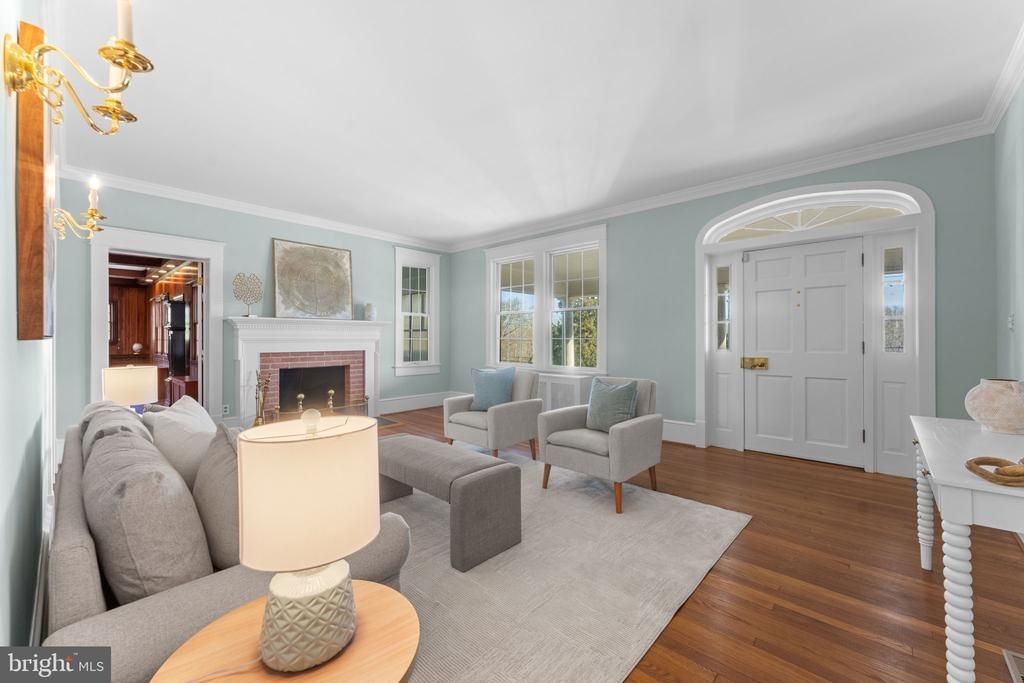 OPEN HOUSE FEB 7, FROM 11-1. Set on 6 picturesque acres, this exceptional all-brick estate offers 4 bedrooms, 3.5 baths, and nearly 5,000 square feet of timeless craftsmanship, thoughtful design, and outstanding outbuildings. The home features four fireplaces, and all-natural wood floors. A bedroom and full bath are conveniently located on the main level. Nine-foot ceilings define the main floor, which includes open stairs with gorgeous chestnut wood railings, a formal living room with brick fireplace and wood mantel, formal dining room, office, den with a brick fireplace, family room with a brick fireplace and walk-in coat closet, kitchen, and half bath. Six doors on the main and lower levels provide direct access to porches, patios, the driveway, and the yard, while large windows on every level fill the home with natural light. The crown jewel of the home is the richly appointed den, showcasing exquisite woodwork, custom built-in bookshelves, a 9-foot beamed ceiling with recessed lighting, and a brick fireplace. Two separate doors lead to the enclosed front porch and the expansive backyard, offering seamless transitions between interior spaces and outdoor living areas. The upper level offers three additional bedrooms and a full bath, featuring wide hallways and abundant windows that create a bright, spacious feel throughout. Bedrooms are generously sized with ample closet space, and a walk-in cedar hall closet provides additional storage. Both the upper- and lower-level full bathrooms reflect classic early-1900s design including mosaic floors and have been preserved in impeccable condition. The basement is accessed by two separate staircases—one leading to a workshop area and the other to a finished family and recreation room complete with a small full bath, bar, brick fireplace, and a separate split HVAC system. Each basement area has its own exterior access. Outside, the property is equally impressive with four quality outbuildings, including a 38’ × 60’ pole barn featuring a 14’ sliding door on the end and a 17’ sliding door on the side, a detached three-car garage with storage above, an 18’ × 30’ chicken coop, and a mill house suitable for use as a horse barn with hay storage. Not counted as one of the outbuildings is a former tenant farmer shack that was occupied as a dwelling with running water and electric many years ago. Two water spigots and two frost-free hydrants support gardening, livestock, or equestrian use. The land is well suited for large-scale gardening, a horse farm, or livestock. An efficient circular driveway provides access to the front of the home and continues to the rear, offering ample parking and ease of use. A steal roof with an expected life of 70 years, or longer with proper care, was installed in early 2000's, A new geothermal heating and air-conditioning system, exceptional brickwork, fine wood detailing, and outstanding overall condition further underscore the value of this stately residence. A truly special offering for the discerning buyer seeking space, privacy, craftsmanship, and enduring quality. The property is ideally situated near the interconnected conservation lands of Patuxent River Park and Merkle Wildlife Sanctuary—providing unparalleled access to 9400 acres of protected parkland, waterways, and miles of scenic trails for hiking, horseback riding, kayaking, and Ranger-led activities for children. Convenient commuting access—approximately 40 minutes to Washington, DC; 35 minutes to the Pentagon; 22 minutes to Joint Base Andrews; and 44 minutes to Fort Meade. 240-714